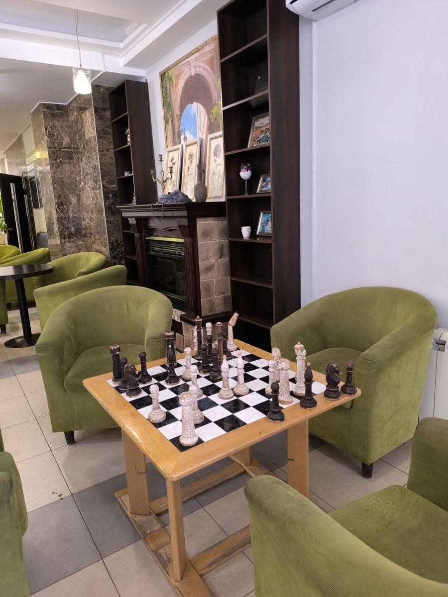 На свежем воздухе надо отдыхать активно. И заниматься спортом. Шахматы, конечно, тоже спорт. Правда, не совсем на свежем воздухе. «Красота!!!» – восхитился мой внутренний поттероман. «Надо фотографироваться!» – оживился внутренний блогер. Мужская часть нашей компании всех возрастов прикипела к бильярду. На удивление столы были свободны всегда. Наверное, потому, что на выяснение того, где взять кии и шары для игры ушло около часа. И никаких объявлений о наличии бильярда в подвале не было. Нам повезло. Мы молчали о бильярде в общественных местах. Однако, шахматы и бильярд плохо вписывались в концепцию отдыха на природе. И Чат ожил. Я как раз привязывала ленточку к дереву желаний, загадывая горячую воду и спортивный инвентарь. 💬 Давайте во что-нибудь поиграем? 🗯️ Наши уже играют в бильярд и шахматы. ⚪ А тут прокат спортивного инвентаря есть. Может в волейбол или на великах? 🫧 Были мы в этом прокате, закрыт он! Вот!!! ⚪ Кто пойдёт на рецепшн спрашивать почему? 🗯️ Я схожу. Я как ра