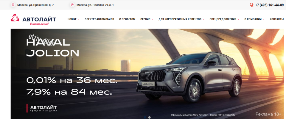 В автоцентре Автолайт можно купить новый или подержанный автомобиль: для личных или корпоративных целей. Также в продаже есть электромобили. На базе салона работает сервис.