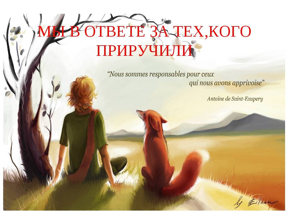 Конечно же, каждый читающий житель планеты Земля знает известное выражение французского писателя Антуана де Сента-Экзюпери, переведённое с французского языка так: "Ты навсегда в ответе за всех, кого приручил".