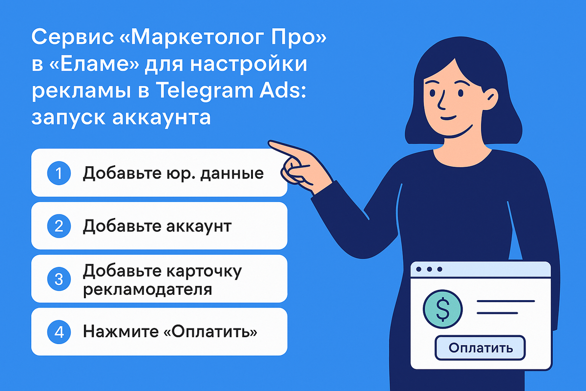 Продолжаю серию статей о том, как использовать сервис "Маркетолог Про" для эффективной рекламы в Telegram. В прошлой статье я рассказал о том, какие типы аккаунтов бывают и чем они отличаются. Сегодня разберем, как запустить аккаунт в "Маркетолог Про" через платформу Елама. Первым шагом нужно внести юридические данные для оплаты и получения закрывающих документов. Для этого: Перейдите в раздел "Финансы" — "Договоры" - "Добавить договор". Добавьте все необходимые реквизиты вашей компании. Проверьте корректность введённых данных, чтобы избежать ошибок при оформлении счетов. После добавления юридических данных для Еламы, вы можете создать аккаунт "Маркетолог Про". Перейдите в раздел "Аккаунты". Нажмите кнопку "Добавить". Выберите "Маркетолог Про" из списка доступных сервисов. О различиях в видах аккаунтов я рассказывал в прошлой статье. Я обычно выбираю "Таргетинги на базе данных МТС" с возможностью рекламы на свою клиентскую базу. Сроки модерации аккаунта После отправки данных и пополнен