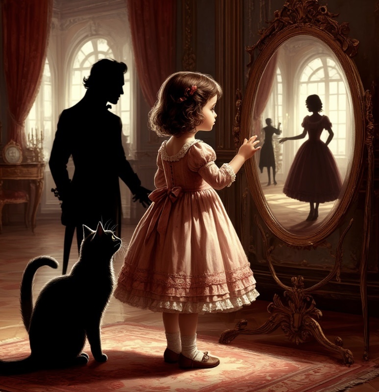 Амели: дочь, которую забыло время — Рождение:Амели родилась в 1695 году от первого брака графа с Изабеллой, умершей при родах. Её колыбелью стала корзина с пергаментами в библиотеке, а нянькой — кот Мурсиль. — Связь с Мурсилем:Амели писала стихи и читала их коту, который «отвечал» ей мурлыканьем-сонатами. Она верила, что Мурсиль понимает каждое слово. — Исчезновение:Когда граф влюбился в Элиану, 8-летняя Амели ревновала и убежала в Зал Зеркал, где её поглотила «Не написанная Книга». С тех пор Мурсиль ищет её во всех отражениях. P.S.Если услышите в библиотеке детский смех — не ищите источник. Это Амели играет с Мурсилем в прятки между страниц, которых ещё нет.
