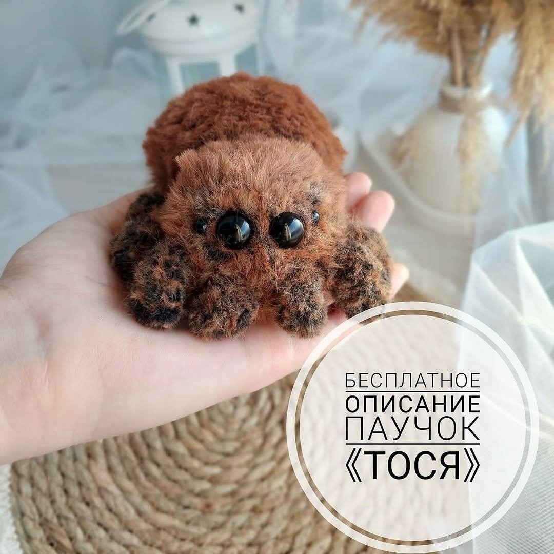Материалы Голова 1р. 6сбн в КА 2р. 6пр - 12 3р. (сбн, пр)*6 - 18 Вставляем глазки 12мм между 2 и 3 рядами 4-6р. 18сбн 7р. (сбн, уб)*6 - 12 8р. 6уб Тело 1р. 6сбн в КА 2р. 6пр - 12 3р. (сбн, пр)*6 - 18 4р. (2сбн, пр)*6 - 24 5-7р. 24сбн 8р. (2сбн, уб)*6 - 18 9р. 18сбн 10р. (сбн, уб)*6 - 12 Нить закрепить, оставить кончик примерно 15см и пришить к голове Лапки 8шт 1р. 5вп со 2-й от крючка 4сбн Оставляем кончик 10см Клыки 2шт 1р. 3вп со 2-й от крючка 2сбн Оставляем кончик 10см Оформление и сборка Подстричь все лапки. Пришить 4 с одной стороны и 4 с другой стороны к голове. Нить спрятать внутри головы Подстричь клыки и пришить спереди по середине. Нити спрятать внутри головы. Приклеиваем глазки 5-6мм по бокам от больших чуть выше Автор: @YULIYA_KNIT4U_TMN