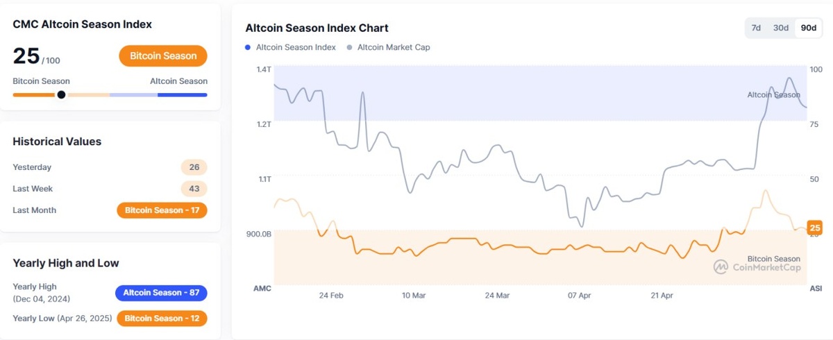 Индекс сезона альткоинов 25... такой же, как и в предыдущий день