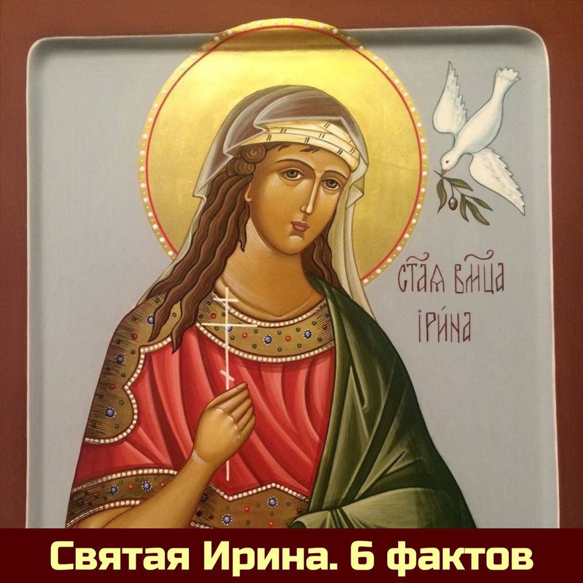 1. Святая великомученица Ирина Македонская, родом славянка, жила во второй половине I в. и была дочерью Ликиния, правителя города Магеддона в Македонии. 2. Еще в юности Ирина поняла суетность язычества и уверовала во Христа. 3. Согласно преданию, ее крестил апостол Тимофей, ученик апостола Павла. 4. Желая посвятить свою жизнь Богу, святая Ирина отказалась от замужества. 5. Познавая все глубже христианскую веру, святая Ирина стала убеждать и родителей стать христианами. Ликиний, отец Ирины, сначала благосклонно внимавший ее словам, потом вознегодовал на нее, и когда она отказалась поклониться идолам, бросил ее под ноги диким лошадям. Не коснувшись мученицы, лошади бросились на Ликиния и задавили его до смерти. Когда по молитве святой он возвращен был к жизни, то уверовал во Христа сам и все его семейство, а с ним уверовало 3 000 человек. 6. После этого святая Ирина стала смело проповедовать Христа среди жителей Македонии, за что много раз подвергалась унижениям и страданиям. По при