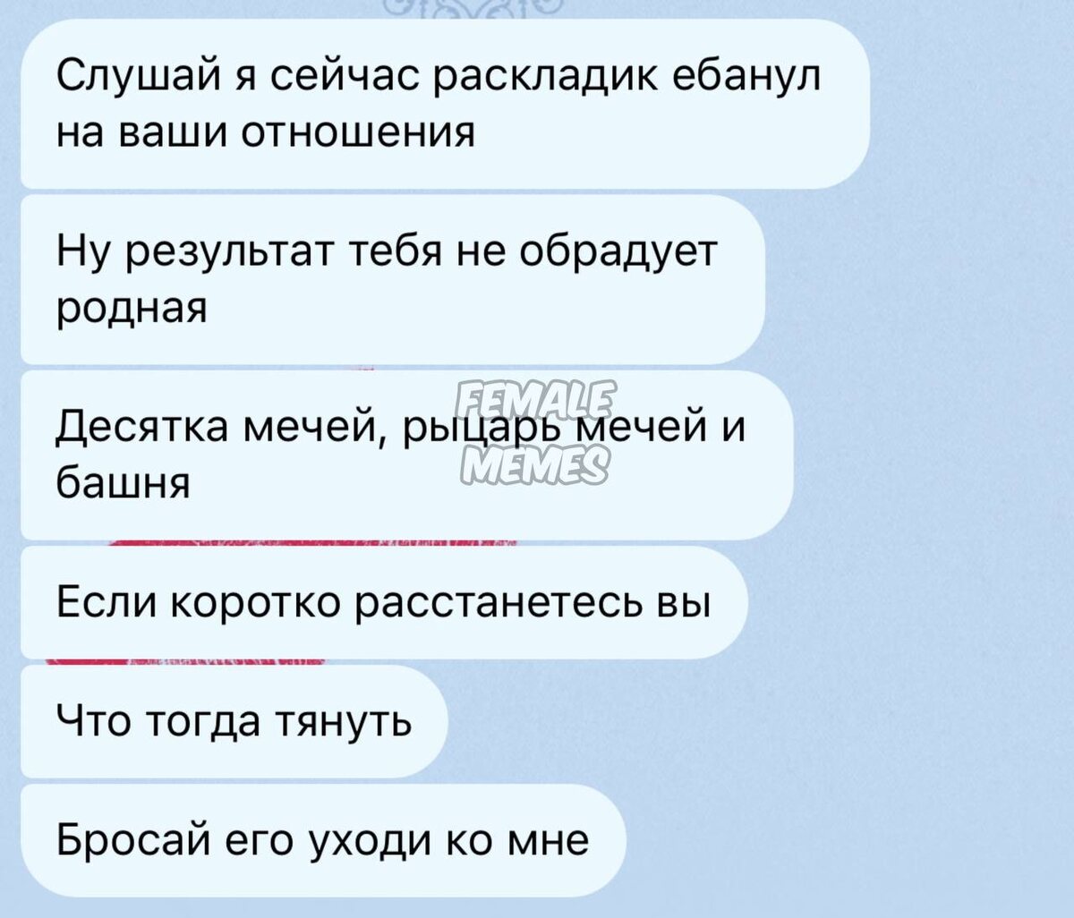 🤩🤩🤩🤩🤩🤩🤩: твой парень не стена- подвинется 🤩🤩🤩🤩🤩🤩🤩: -картинка- 🤩🤩🤩🤩🤩🤩🤩🤩🤩🤩 Доброе субботнее утро, мои дорогие! ☕️☕️☀️ Мне тут показали эту картинку - не могла не поделиться с вами! Такой легкий таро-юмор✌️ Карта дня - четверка пентаклей! Знаете, это как тот самый хомяк, который крепко держит свои запасы за щеками и ни с кем не делится! 😂🥳 С одной стороны, стабильность – это прекрасно. Чувствуешь себя уверенно, как будто у тебя есть свой личный Форт Нокс. Но с другой… а не пора ли немного расслабиться и позволить себе маленькие радости?😊✨ Может быть, сегодня стоит купить себе тот самый кофе с сиропом и взбитыми сливками, о котором так давно мечтали?🍨🍨🍨🍨Или, знаете, заказать ту самую пиццу с ананасами 🍕🍕🍕(да, я знаю, это грех, но иногда так хочется!)😋 Жизнь слишком коротка, чтобы отказывать себе в маленьких удовольствиях!💖 Четверка пентаклей призывает нас к осознанности в отношении наших ресурсов. Не только финансовых, но и эмоциональных. 😺 Не
