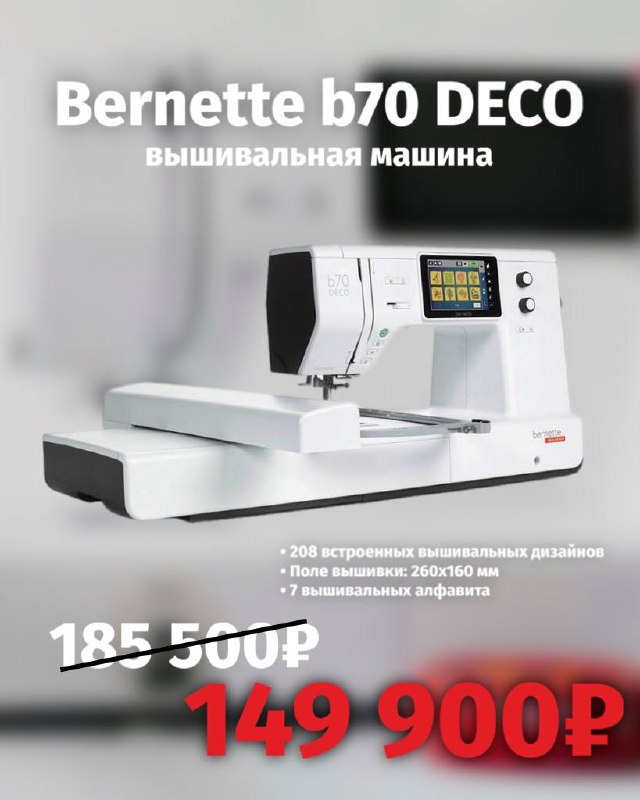 ⭐️ Вышивальная машина Bernette b70 Deco - 149 900₽ вместо 185 500₽;