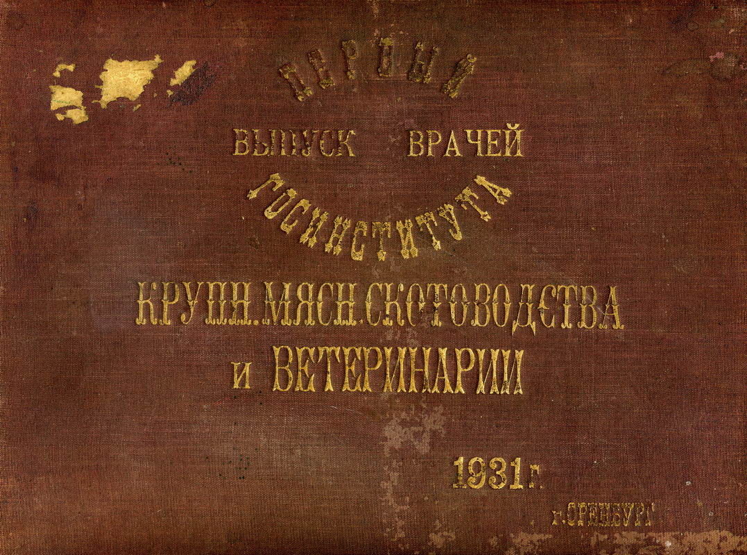 Дарственный альбом выпускнице Госинститута крупного мясного скотоводства и ветеринарии Промахиной Е.С. Г. Оренбург. 1931 год. На первом групповом фото в центре профессор Фёдор Михайлович Лазаренко (1888-1953) – выдающийся советский ученый-гистолог, врач, педагог, член-корреспондента Академии медицинских наук СССР. Он похоронен на старом городском кладбище на проспекте Победы. Его могила сразу за главными воротами кладбища. Фото: https://vk.com/public219347197?w=wall-219347197_209 © Материал подготовила Надежда Кутафина.