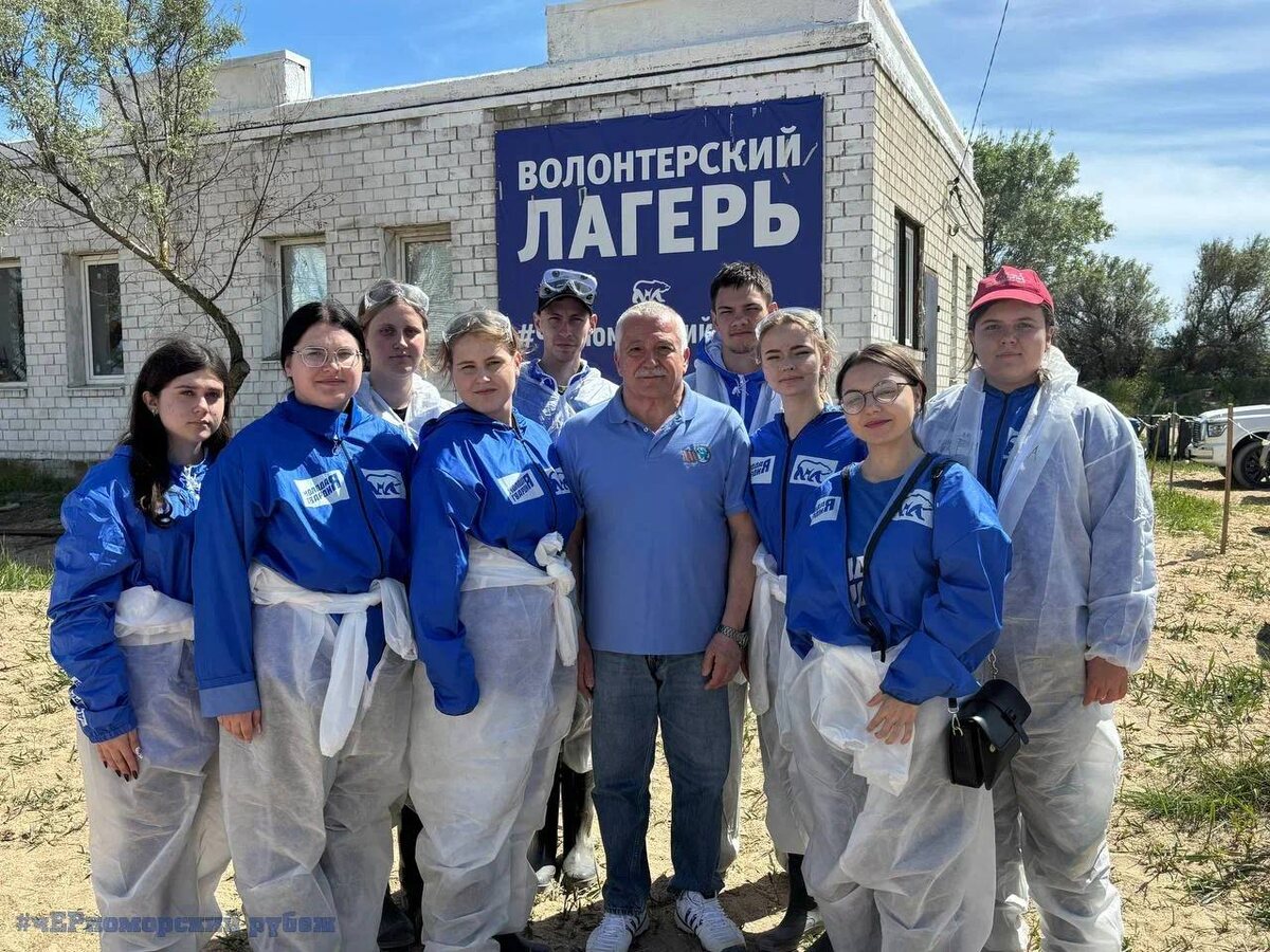 Активисты «Молодой Гвардии» «Волонтерской Роты», помогающие ликвидировать последствия экологической катастрофы на побережье Черного моря, встретились с российским космонавтом, Героем России — Федором Николаевичем Юрчихиным