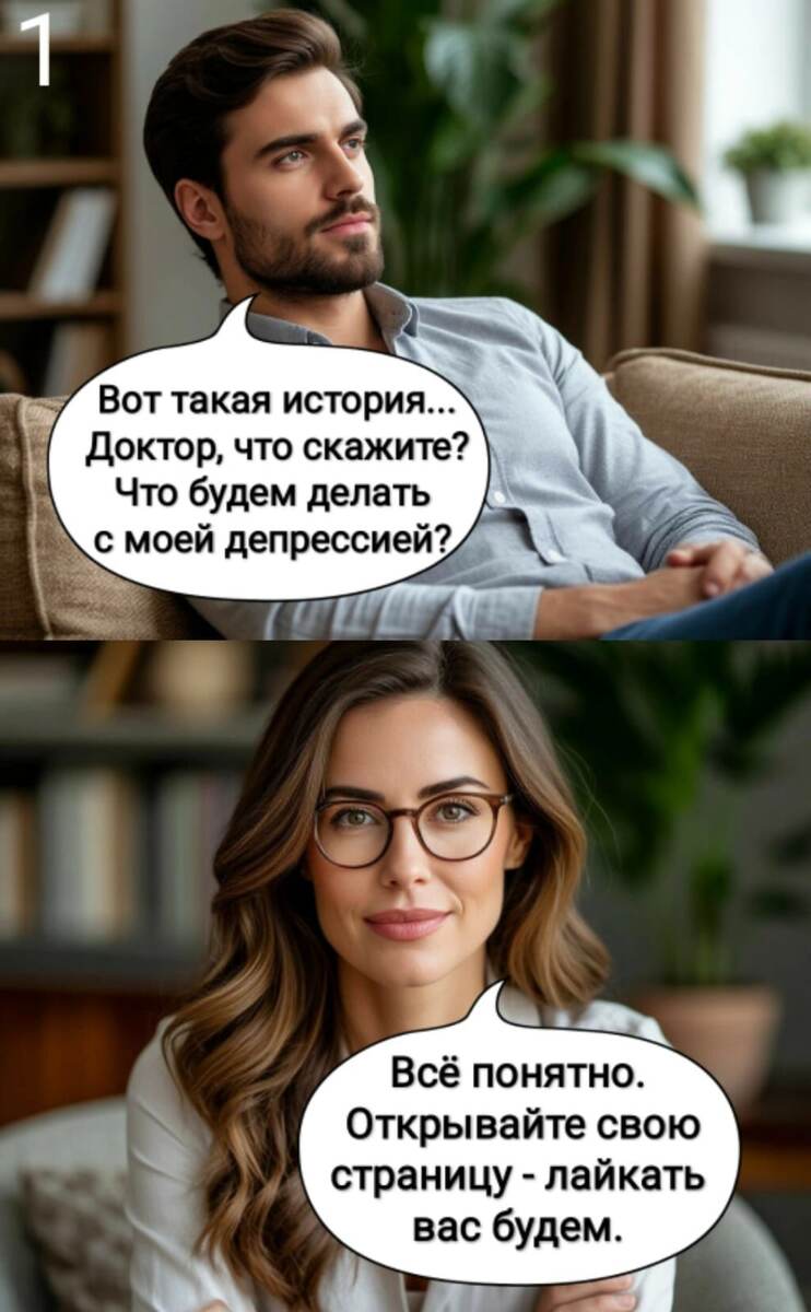 Хорошего психолога, профессионала своего дела найти сложно. Часто уже с первых минут разговора понятно, что перед вами либо специалист, либо шарлатан. У всех разные подходы. Некоторые не работают, а некоторые очень даже действенные, как на картинке. Надо пробовать!