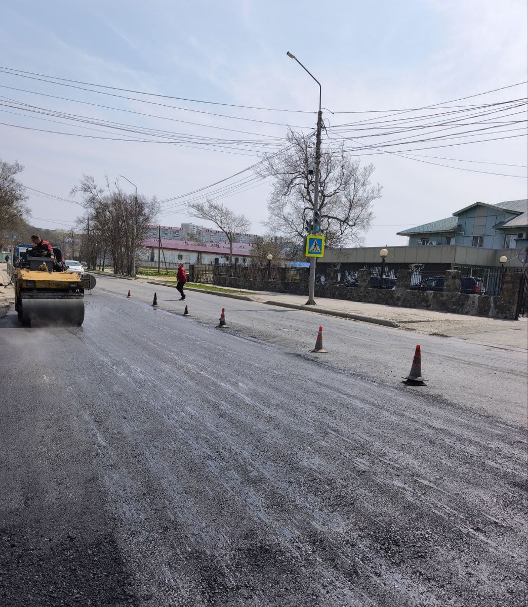🚧 Ремонт дорог продолжается в Корсакове. 👷♂️Сегодня специалисты ДРСУ укладывают асфальт на улице Комсомольской и Гвардейской. Планируют заменить около 250 квадратных метров асфальта. ⚠️Движение в местах проведения работ затруднено. Будьте внимательны!
