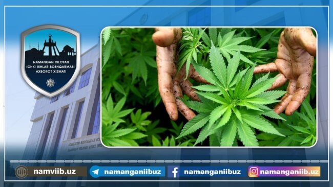 Сотрудниками отдела внутренних дел Мингбулакского района было проведено оперативное мероприятие, в рамках программы "Безопасная и здоровая страна". В ходе мероприятия был проверен дом жителя махалли "Киркчек", 1979 года рождения. При проверке выяснилось, что мужчина выращивал на своём приусадебном участке наркотикосодержащее растение каннабис. Всего удалось выявить и изъять 7 кустов запрещённого растения.