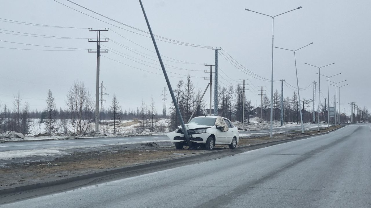 Сегодня ночью, столб на улице Окружная обогатился историей про встречу с Ладой Грантой.