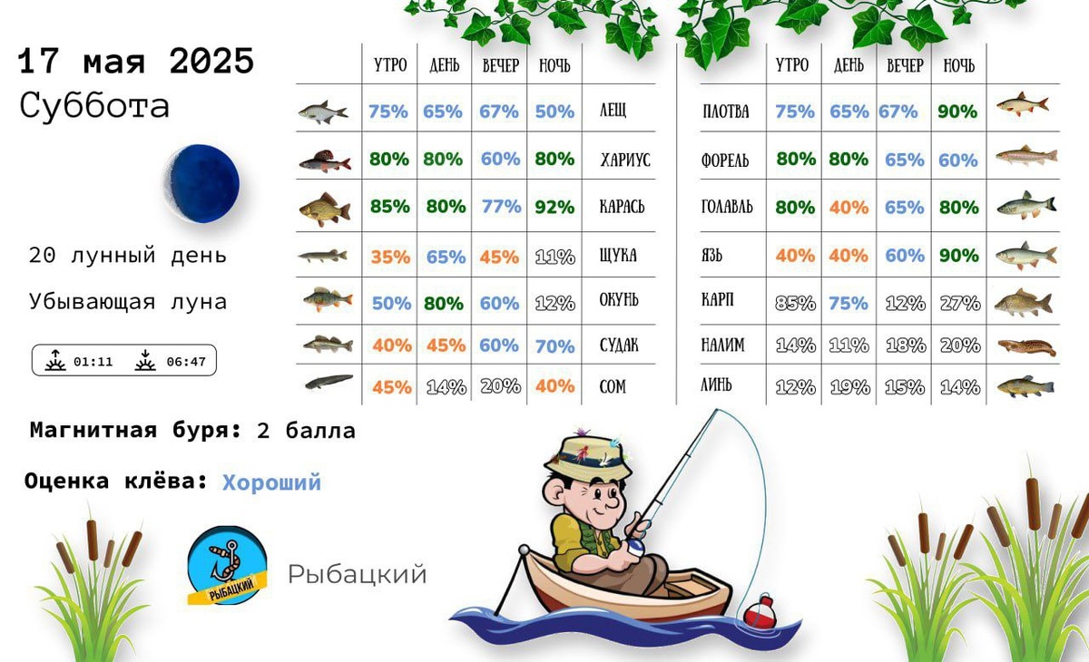 Прогноз клёва на 17 мая по фазе и состоянию луны ✅ На заметку❗️ На поведение плотвы влияние оказывает погода и время года. ☀️ Летом, с приходом жары, и резким повышением температуры воды, она уходит на глубину. Может скрываться в тени деревьев, расположенных вдоль береговой линии.