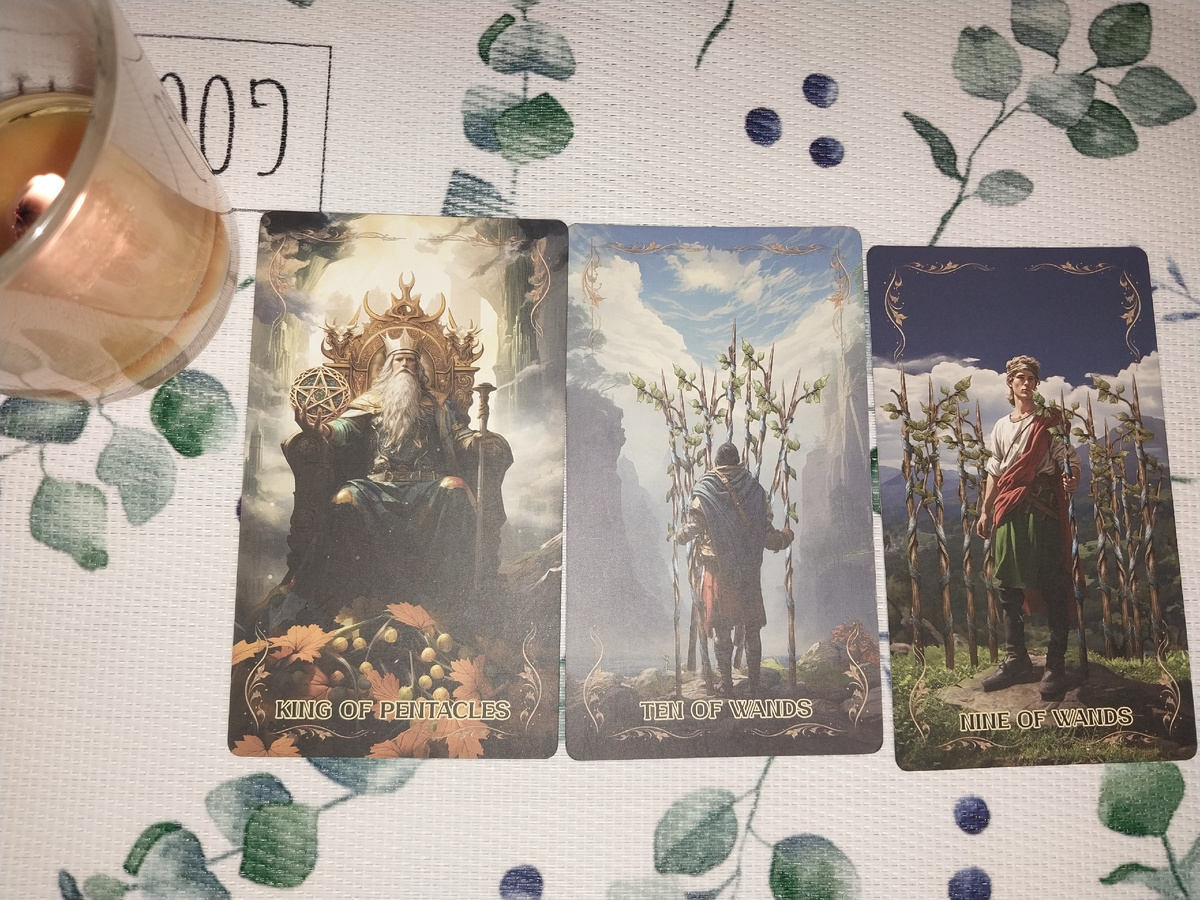 Три пентакля представляют сотрудничество, работу в команде и творческий подход. Это также может отражать активное участие в коллективных проектах или развитие профессиональных навыков. Мужчина вовлечён в деятельность, требующую умения работать совместно с другими людьми и эффективно распределять усилия. 👥