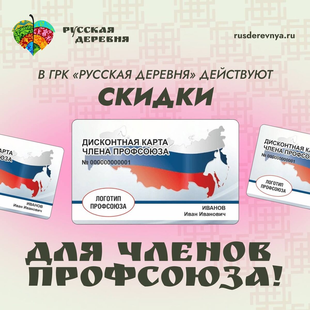 🤩 Дорогие гости, для членов профсоюзов в ГРК «Русская Деревня» действуют специальные скидки! Узнайте подробности о предложении при