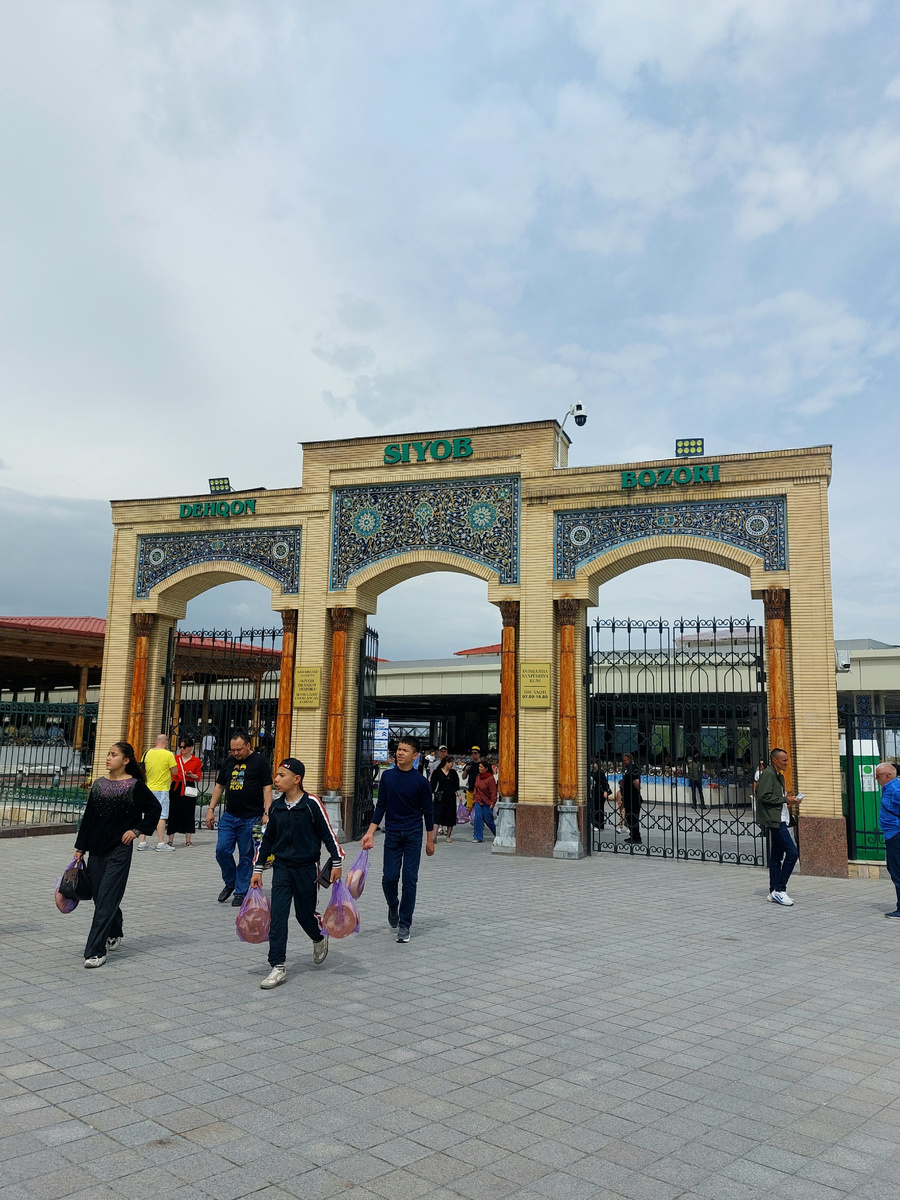 До начала нашего маршрута мы доехали на автобусе, далековато было идти пешком. Сиабский базар. Начали с него, при том что я базары терпеть не могу, заходили мы на него 3 раза с разных входов 🤣. Хотела прикупить себе халатик. С второй попытки купила. Третий раз зашли понаблюдать за ремесленниками. Мечеть Хазрат Хызр ул. Ислама Каримова, 7. Мечети всего-то 100лет. 😊 Вход на территорию бесплатный. Находится на возвышенности. С балкона красивый вид на город. На территории мечети находится мавзолей первого президента Узбекистана Ислама Каримова. Рядом Городище Афросиаб Руины и музей. При желании можно посетить, нам не хватило времени. Самое яркое моё впечатление от Узбекистана - комплекс старинных мавзолеев Шахи-Зинда. ул. Шах-и-Зинда, 39. Любим мы ходить путями отличными от путей нормальных туристов. Часто обходим достопримечательность снаружи по всему периметру. Вот и этот комплекс обошли и увидели с высоты. Гуляя внутри точно такого вида не поймаете. Пришлось для этого мно