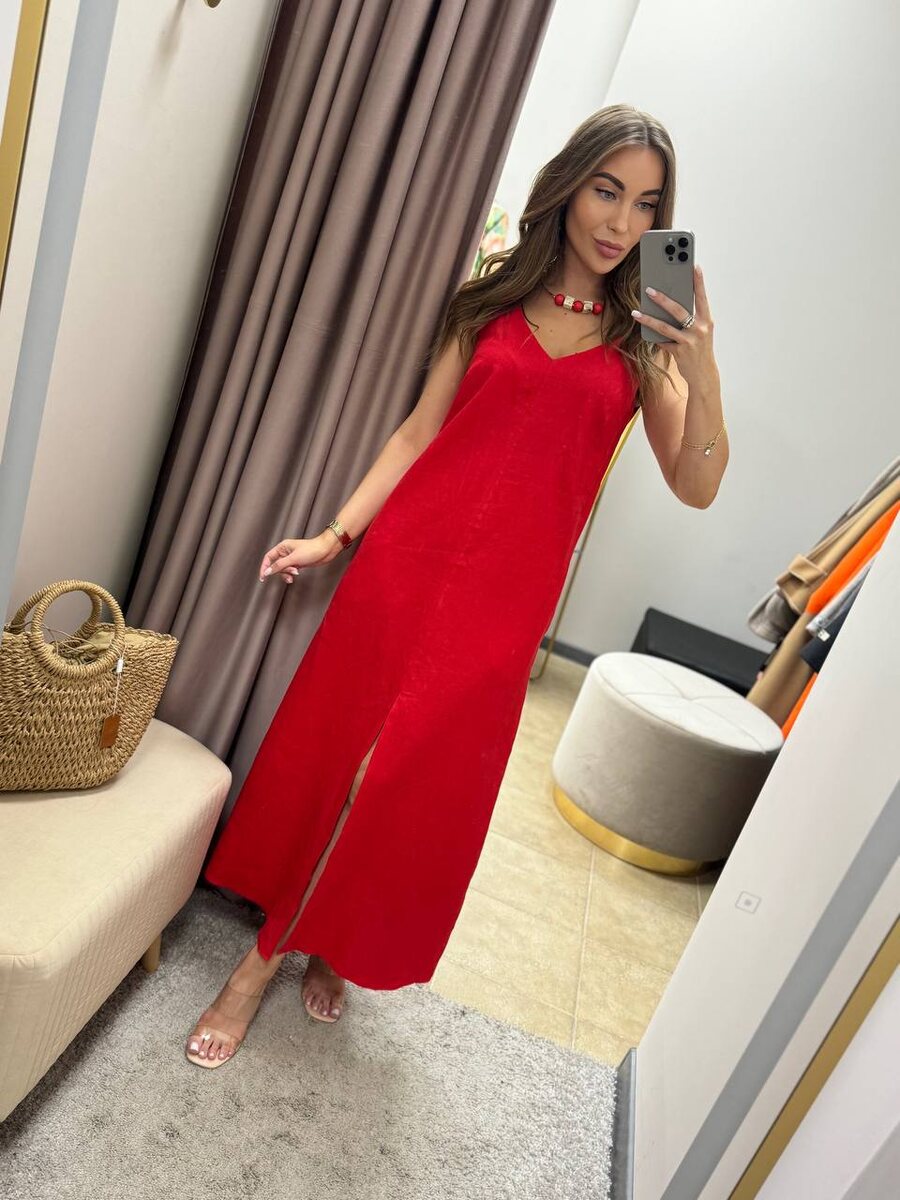 Платье из 💯% льна ! Невероятный алый оттенок смотрится очень эффектно 💔 Размеры :42,44,46,48