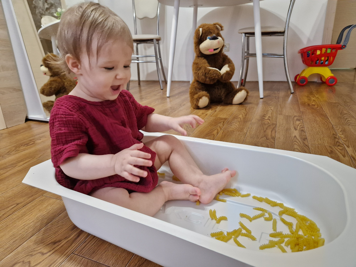 Если вашему малышу около года, и вы хотите развивать его через игру, этот недельный план станет отличным помощником. Все занятия рассчитаны на 5–10 минут и направлены на развитие моторики, сенсорики, речи и творческих навыков. А главное — всё в форме игры, с учётом безопасности и повторения! Понедельник Начинаем с сенсорной игры: насыпаем овсянку или макароны в контейнер, прячем игрушки, пересыпаем, изучаем текстуру. Далее предлагаем полосу препятствий — подушки, одеяла и коробки станут интересным испытанием для ползания и лазания. Вторник Работаем над мелкой моторикой — играем с крышками и коробками, открываем-закрываем, изучаем. А ещё поём простые песенки с движениями: хлопаем, топаем, качаемся в такт. Среда Творческий день — рисуем пальчиками с помощью йогурта и пищевых красителей. Это безопасно и весело! Потом играем с мыльными пузырями — ребёнок ловит, тянется, наблюдает, что отлично развивает координацию. Четверг Снова сенсорика — играем с помпонами, пересыпаем их руками или