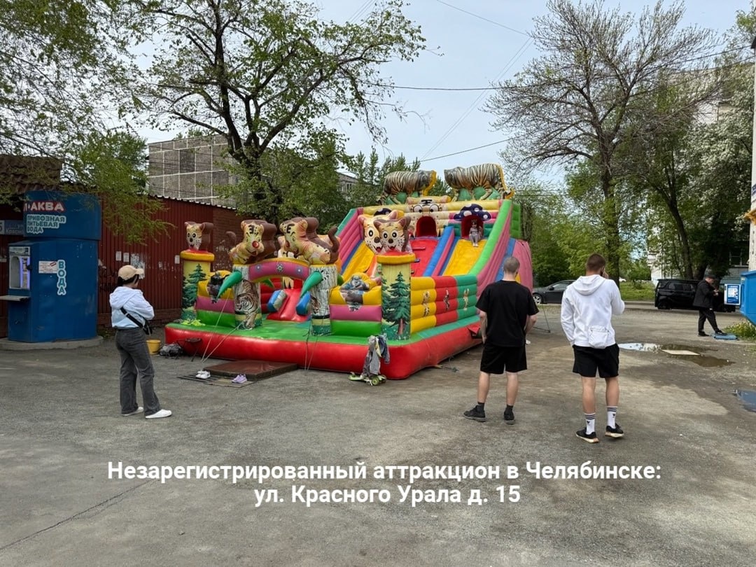 Челябинцев предупредили об опасных аттракционах для детей На улицах Челябинска начали появляться надувные батуты, несколько незаконных аттракционов уже выявили сотрудники Гостехнадзора. По данным ведомства, батуты без регистрации работают на Красного Урала, 15, в сквере «Семейный» на Энергетиков, в сквере «Сигнал» на пересечении Дербентской и Новороссийской, около бизнес-центра «Аврора» на Дзержинского, 93б. В отношении них пообещали в ближайшее время провести проверки, а родителям посоветовали не отпускать детей на небезопасные аттракционы.