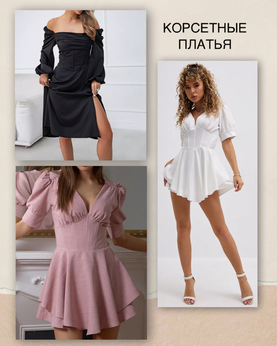Мода на оверсайз и универсальные вещи постепенно сдвигается, поэтому на улицах всё чаще будут появляться девушки в обтягивающих и коротких вещах. Впрочем, удобство никуда не исчезло — речь не о резкой смене трендов, а о плавных изменениях. Оверсайз, мешковатые рубашки и многослойность всё ещё актуальны, но теперь они соседствуют с откровенными деталями и подчёркнутой женственностью. Главный акцент — на тонкой талии, а самой популярной длиной станет мини (в 2025 году это отдельный тренд). Однако в моде и платья миди, и модели ниже колена — например, с романтичными разрезами. Материалы: от плотного хлопка до атласа с глянцевым блеском. Многослойные, с ярусами, рюшами или воланами — такие платья словно созданы для летних прогулок. Если добавить к ним босоножки на тонком каблуке — получится образ в духе «нежного облачка». Романтичный клёш, начинающийся от плеча, локтя или запястья, — фишка топов и платьев этого сезона. Такие топы прекрасно сочетаются с джинсами, брюками и юбками. Д