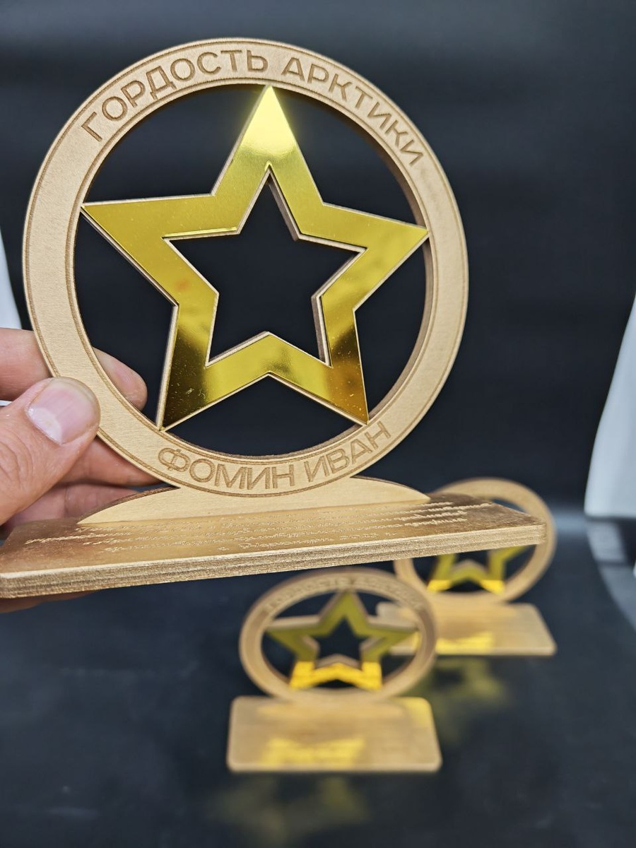 Сегодня в школе "Арктика" награждают учащихся в номинации "Гордость Арктики" Специально к этому событию сделали оригинальные кубки из дерева и акрила👍