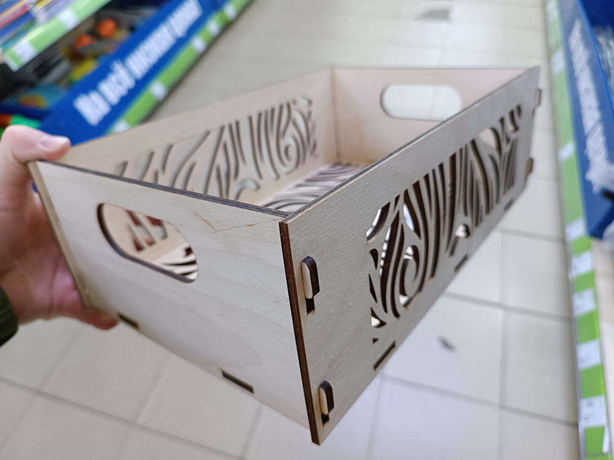 Стороны вырезаны узорами насквозь, есть ручки. Но высота бортиков не очень большая.
