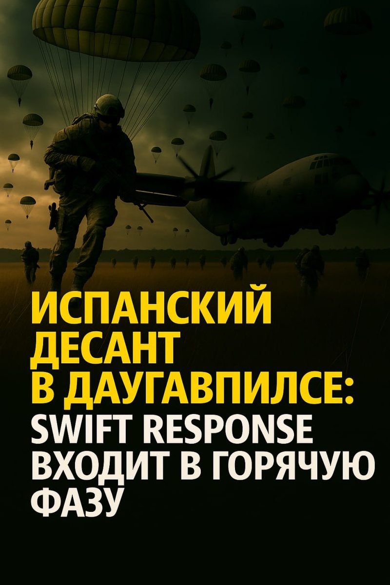 Вчера в рамках международного учения Swift Response 2025 состоялась крупномасштабная воздушно-десантная операция на аэродроме Грива (Даугавпилс, Латвия). С борта военно-транспортных самолётов были десантированы около 500 военнослужащих 6-й воздушно-десантной бригады «Альмогаварес» (BRIPAC) сухопутных войск Испании.