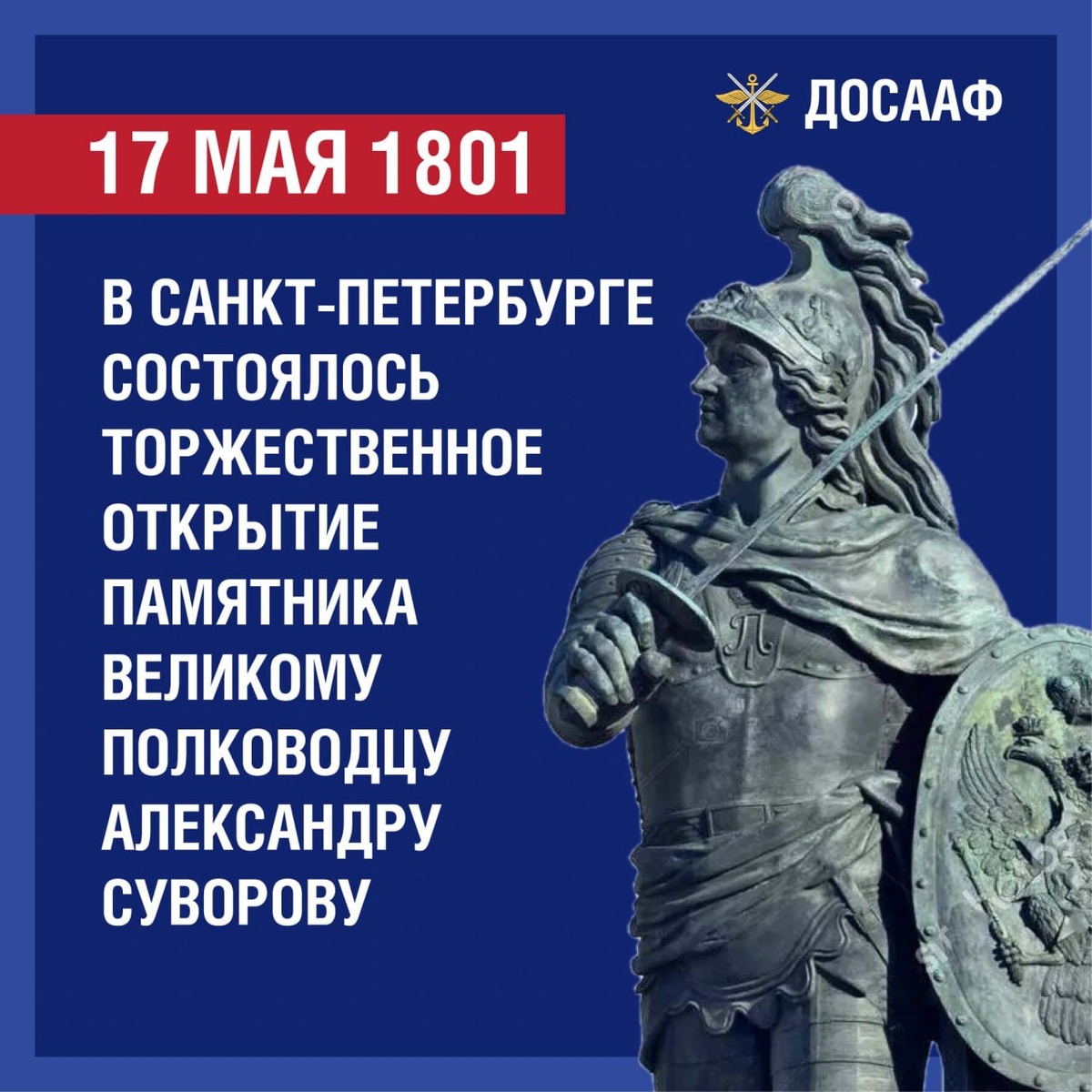 17 мая 1801 года в Санкт-Петербурге на Марсовом поле состоялось торжественное открытие памятника великому полководцу Александру Васильевичу