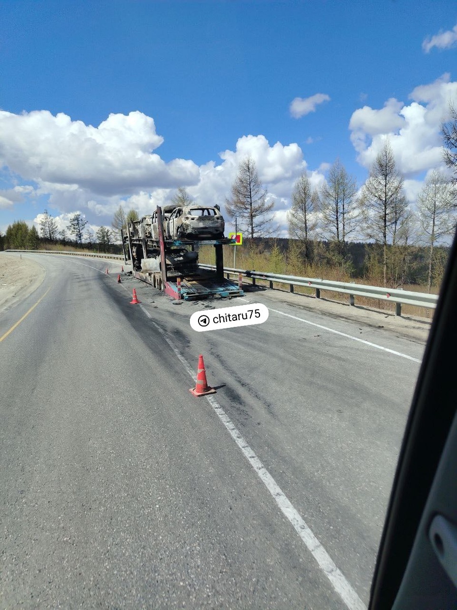 Автовоз сгорел дотла на трассе рядом с селом Новотроицк Читинского района