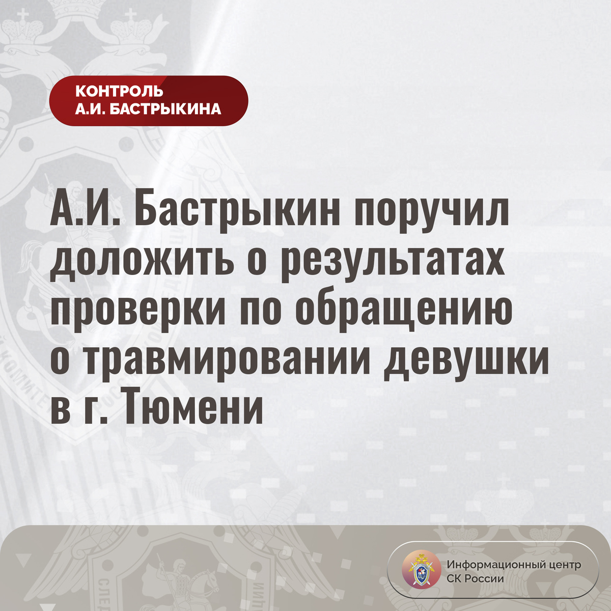 А.И. Бастрыкин поручил доложить о результатах проверки по обращению о травмировании девушки в г. Тюмени