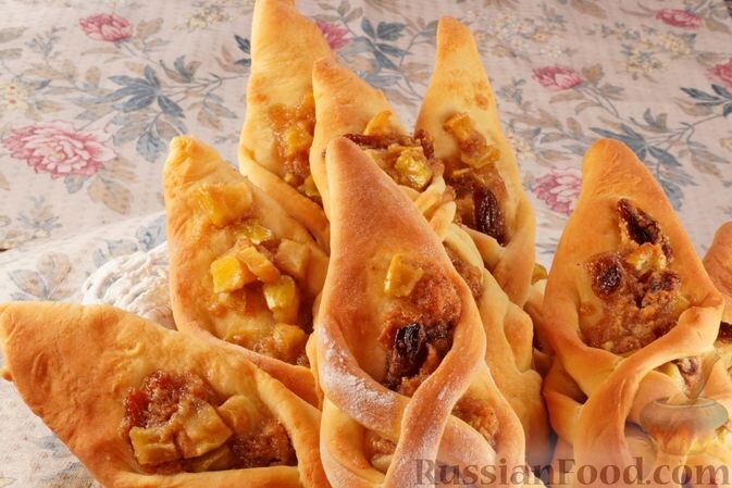 Булочки с яблоками и изюмом. Картофельно-творожные пирожки с зеленью и яйцом. Пирог с капустой. Пирог с творожным сыром. Пирог с ревенем и творогом. Тонкие картофельные блины. Пирожки с цитрусовой начинкой. Картофельно-творожные пирожки с зеленью и яйцом. Необычное тесто для пирожков – из картофельного пюре и творога. Начинка – одна из самых популярных – отварные яйца с зеленью. Заливной пирог с капустой, яйцами и свежим укропом – представитель кулинарной классики. Жидкое тесто для пирога замешивается на сметане и майонезе. Готовится капустный пирог очень просто, получается нежным и очень вкусным. Песочный пирог "Творожный" – с невероятно нежной начинкой из сливочного творожного сыра. Начинка выкладывается на основу пирога из песочного теста и сверху покрывается тёртым охлаждённым тестом. Насыпной пирог с ревенем, творогом и корицей. Кислинка ревеня прекрасно сочетается с нежным вкусом творога. Пирог готовится из рассыпчатого теста-крошки на основе сливочного масла. Выпекаемые на сухо