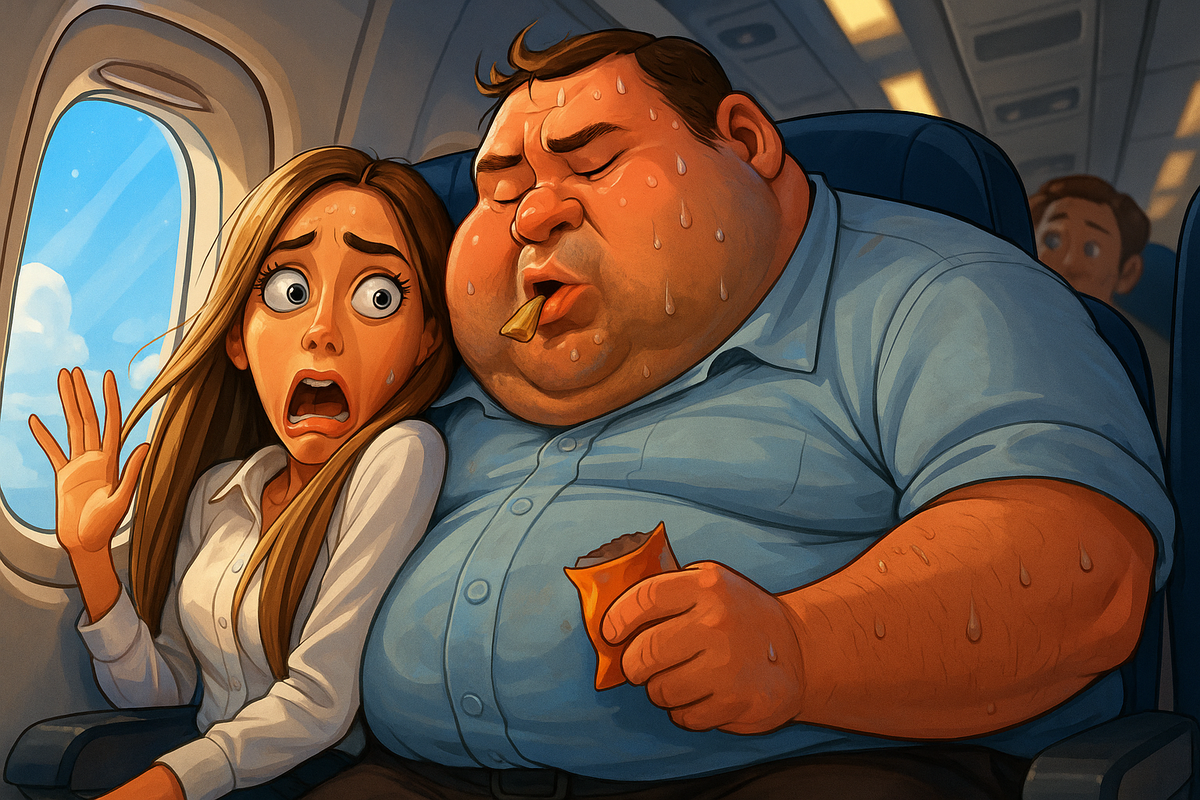 Лететь рядом с таким — пытка! Когда в полёте тебя придавил сосед: что делать, если рядом растёкся пассажир XXL+