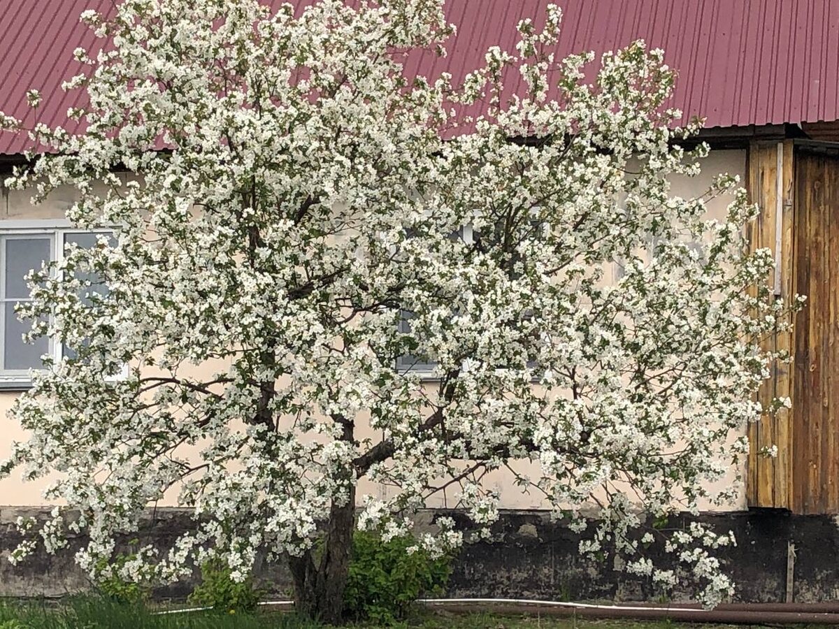 А эта ранетка радует Шейлу. На неё слетаются пчёлы 🐝 и их малышка разглядывает целый день из окошка