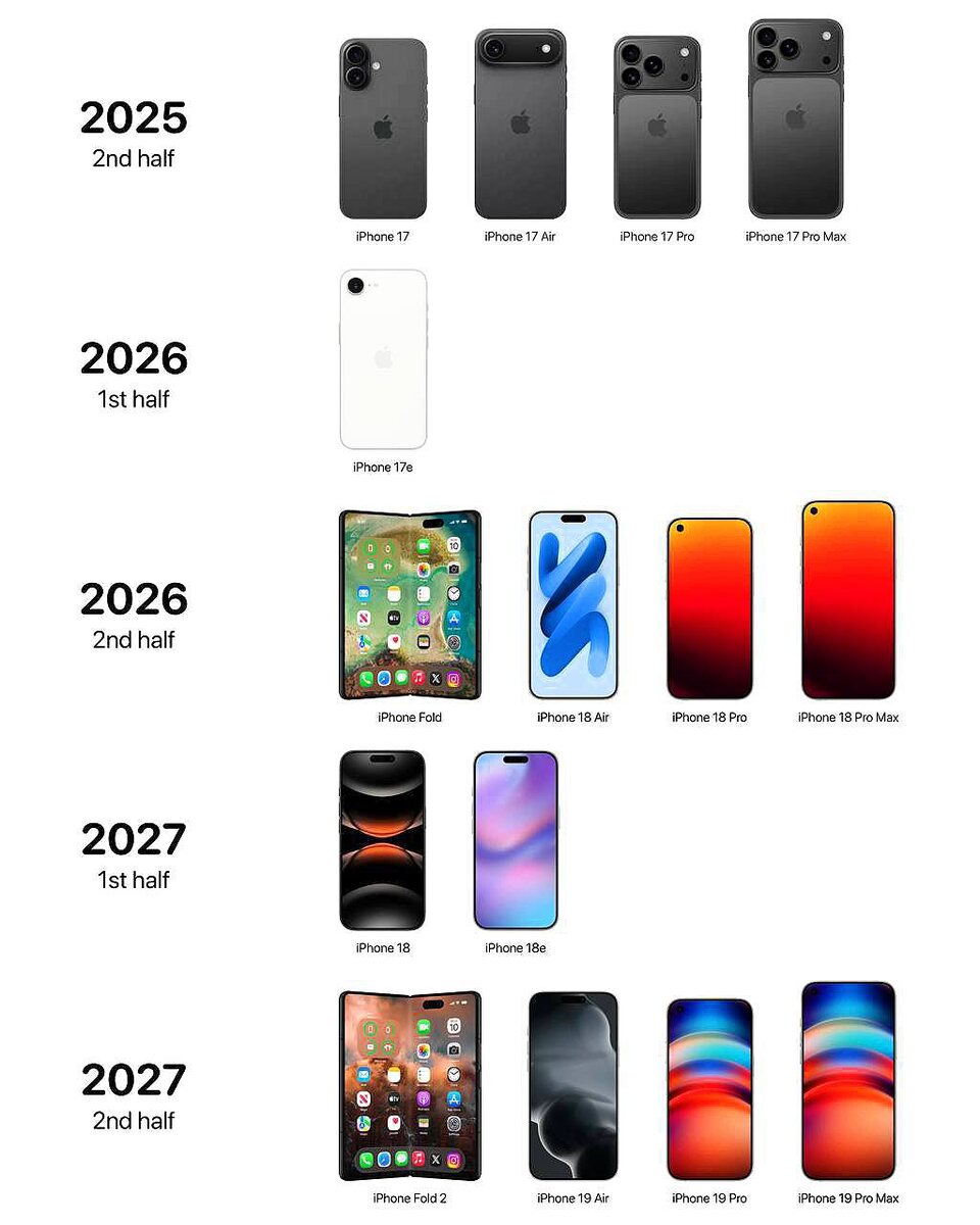 ❕❕ Утечка планов Apple: грядет революция в линейке iPhone! По данным аналитика Минг-Чи Куо, с 2025 по 2027 год компания готовит целую волну новинок: — iPhone 17 получит полностью новый дизайн — Появится ультратонкая версия iPhone 17 Air — В 2026 году дебютирует складной iPhone Fold — iPhone 18 Pro обзаведётся Face ID под экраном — Apple расширит линейку: новые модели серии "e" и развитие линейки Air 🔥 Важно: теперь релизы будут каждые полгода — Apple явно меняет стратегию! Сохрани картинку — скоро проверим, какие прогнозы сбудутся! ТехноКонтент