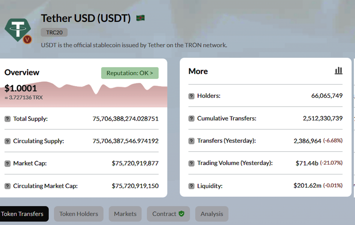 Самый популярный на сегодняшний день – стейблкоин Tether, выпущенный в сети Tron на основе стандарта TRC-20. Эти монеты широко используются не только трейдерами для переводов цифровых активов между биржами, но и в сфере потребительских платежей.