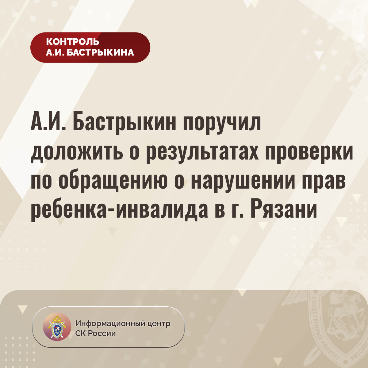 А.И. Бастрыкин поручил доложить о результатах проверки по обращению о нарушении прав ребенка-инвалида в г. Рязани