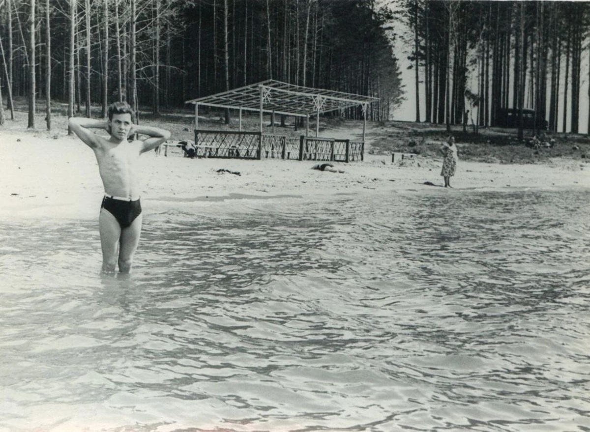 На фотографии 1961 года молодой человек стоит в водах Обского моря на Солдатском пляже.
