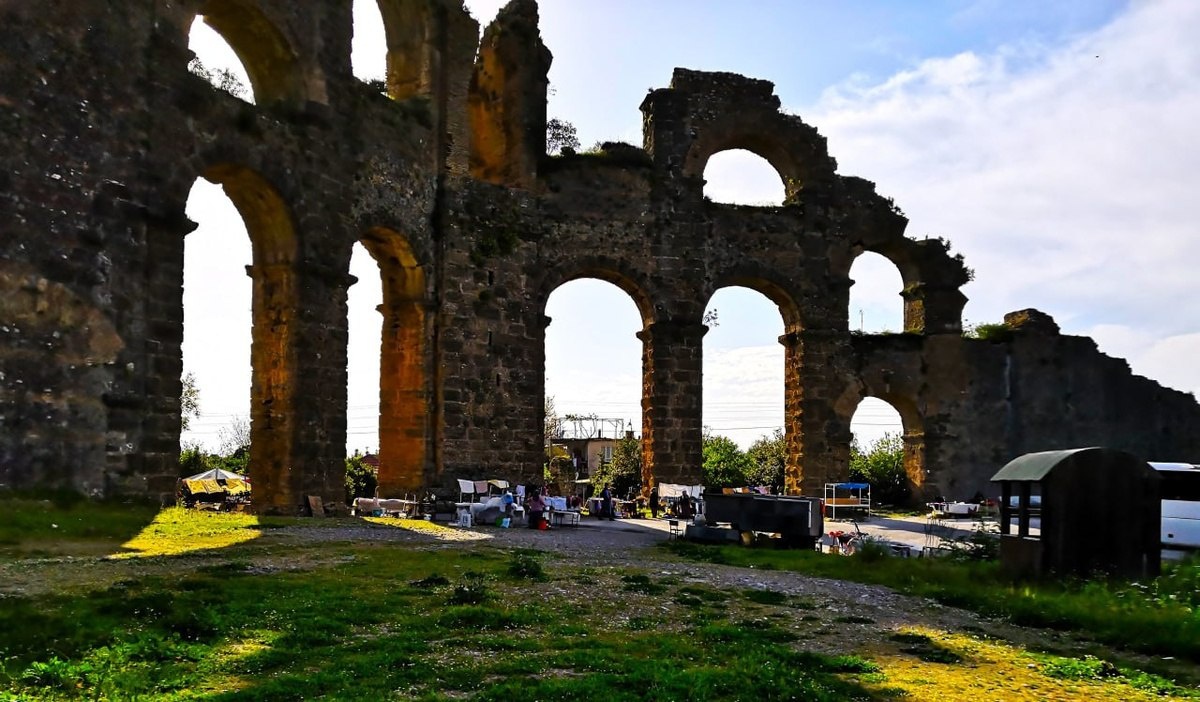 Акведук в Сиде, Турция Остатки древнего акведука находятся в 17 километрах от популярного туристического города Сиде Акведук начали строить во второй половине II века нашей эры, во время расцвета римской империи. Водопровод состоял из 22 мостов и 16 туннелей, общая длина которых составляла больше 32 км, а перепад высот составляет 36 метров. Акведук заходил в город по большой трубе, находящейся под землей, и выходил наружу рядом с центральным фонтаном Сиде. Он подавал воду в город в течение 100 лет, после чего в первой половине III века его полностью реконструировали и запустили заново. Меня очень впечатлило это сооружение 🔥 #путешествияблондинки #турция
