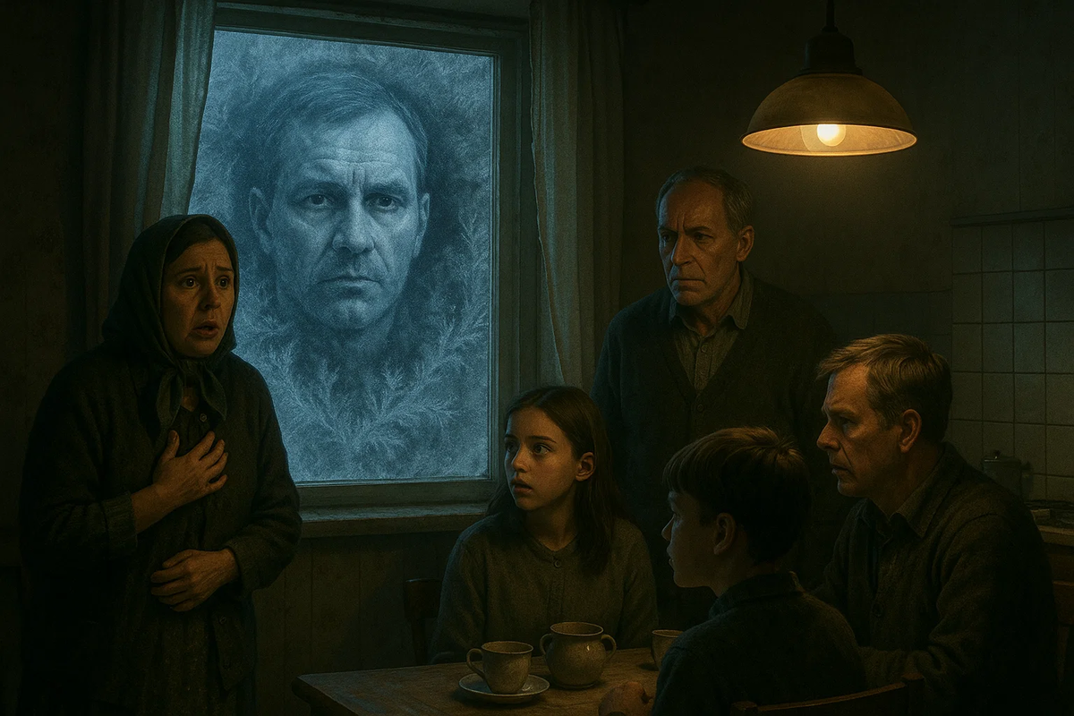 На оконном стекле кухни, покрытом морозными узорами, чётко выделялось изображение. Это было не просто абстрактное переплетение линий, а лицо — лицо Рината. Его черты были узнаваемы: высокий лоб, прямой нос, слегка прищуренные глаза. Узоры, созданные морозом, словно намеренно сложились в портрет покойного. Все замерли, не в силах отвести взгляд. Зима в тот год была суровой, окна покрывались причудливыми узорами, но чтобы мороз нарисовал портрет человека? Такого никто не видел.