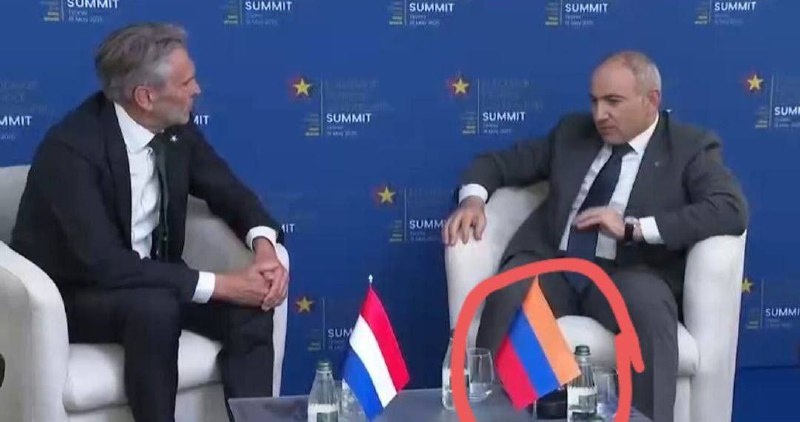 Նիդերլանդների վարչապետի հետ Նիկոլ Փաշինյանի հանդիպման ժամանակ ՀՀ դրոշը թարս է դրված։ Դա երևում է այլ աղբյուրներում տարածված տեսանյութերից։