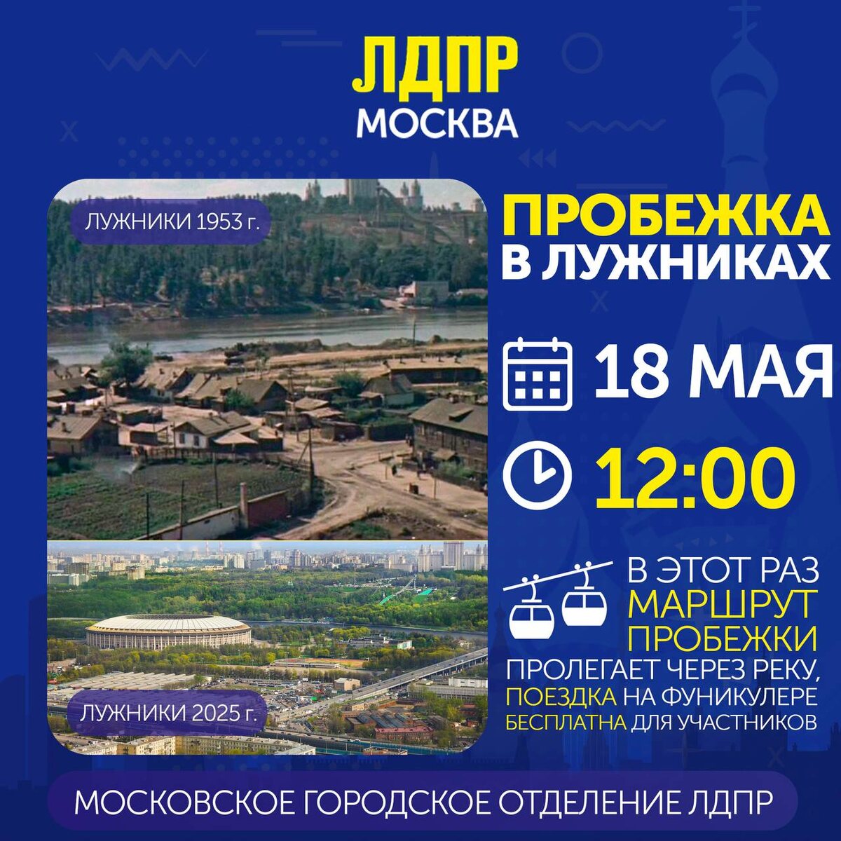 Приглашаем на пробежку в Лужниках! ❓А вы знали, что 70 лет назад на месте олимпийского комплекса "Лужники" были огороды? А сейчас здесь одно из самых популярных мест для активного отдыха в Москве. 💧Территория Лужников раньше была покрыта лугом, который в половодье затапливала Москва-река. После спада воды оставалось много луж-озерков, поэтому деревня, которая находилась в этом месте, называлась Лужки, отсюда и получилось название «Лужники». В 1960-е годы здесь был построен спортивный комплекс, который стал символом советской спортивной мощи. Именно в этом историческом месте, где раньше были огороды, будет дан старт нашему еженедельному спортивному мероприятию. ☄️ 🆓 В это воскресенье частью маршрута станет бесплатная поездка на канатке. Все желающие смогут прокатиться! Это не просто транспорт, а настоящее приключение, которое открывает захватывающие виды на Москву c высоты птичьего полёта. На самом верху, после схода с канатной дороги, будет организовано чаепитие и фотосессия. ?