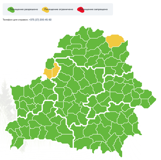 Согласно карте Минлесхоза, на территории Гомельской области сняты все ограничения на посещение лесов.