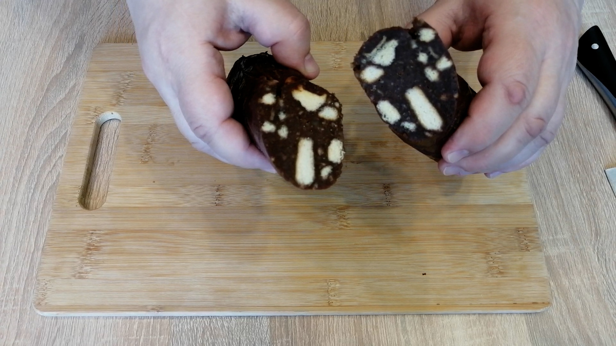 Вливаем шоколадную смесь к печенью и снова мешаем до однородности. Масса должна быть влажной, но не жидкой.