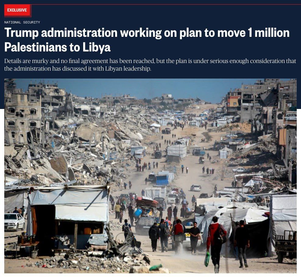 Администрация Трампа прорабатывает план массового переселения палестинцев из Газы в Ливию. По информации NBC News, американская администрация ведет переговоры с ливийскими властями о возможном переселении около миллиона жителей Газы. В качестве компенсации Вашингтон рассматривает возможность разблокировки миллиардов долларов, замороженных на ливийских счетах более десяти лет назад. Представитель ХАМАС Басем Наим категорически отверг подобные планы, подчеркнув привязанность палестинцев к своей земле и их готовность защищать родину. По его словам, только сами палестинцы вправе решать свою судьбу.
