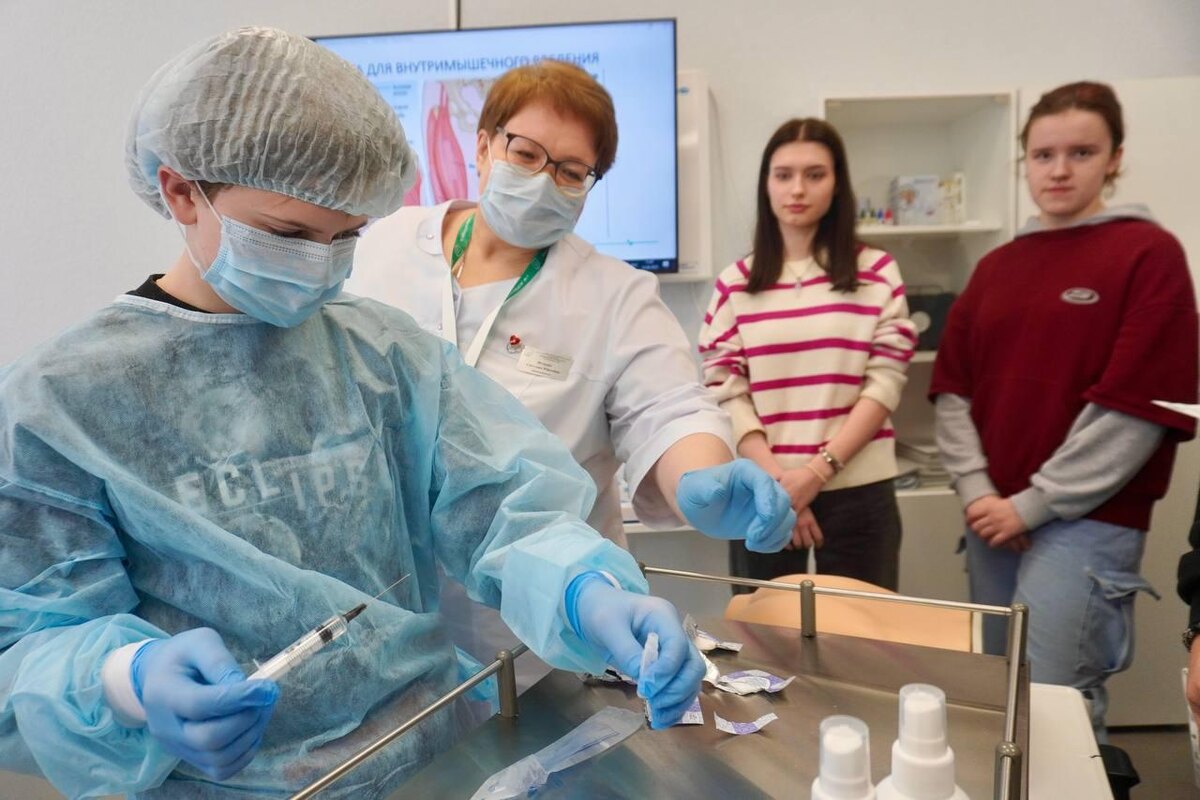 💙 Уже более 150 гостей: День открытых дверей в МК №1! Сегодня, 17 мая, в колледже — атмосфера вдохновения и движения к будущему! Школьники участвуют в мастер-классах, осматривают фантомы человека и другое оборудование для отработки навыков, слушают выпускников и знакомятся с профессией изнутри. 🧪 В программе — инъекции, СЛР, исследования крови, пеленание новорождённых. 🏥 Экскурсии, встречи с преподавателями и работодателями, ответы на все вопросы о поступлении. МК №1 — это практика с первого курса и обучение у действующих специалистов. Добро пожаловать в профессию! 🌟 #ДОД #ДОНМ #МедКолледж1 #КолледжиМосквы