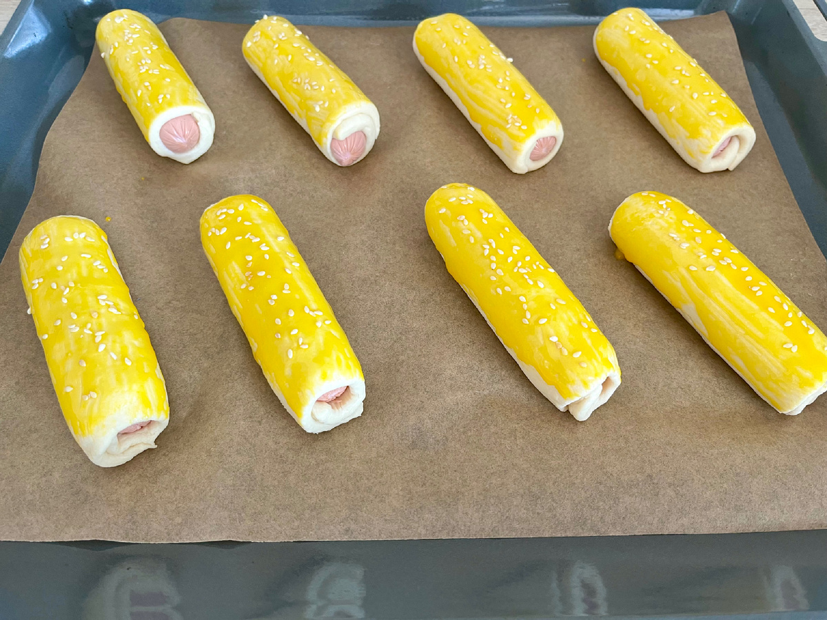 Привет, друзья! В очередной раз кому-то подскажу, а кому-то напомню идею быстрой и простой выпечки – сосиски в тесте. Но без самостоятельного замешивания теста (да и сосиски не будем готовить сами🤫, а купим так же, как и тесто). Я вообще предпочитаю иметь запас готового слоеного теста: лежит себе в морозилке до поры до времени, зато выручает в подходящий момент. Вы любите слоеное тесто? Поделитесь - чтО из него готовите? для чего используете? (один ум хорошо, а два лучше). Иногда встречаю очень интересные рецепты - сразу хочется повторить. Самое простое и быстрое - испечь СОСИСКИ В СЛОЕНОМ ТЕСТЕ. слоеное тесто - 1 упаковка (2 листа) сосиски - 8 штук Тесто можно взять как дрожжевое, так и бездрожжевое. Подождать, пока оттает до такого состояния, что его можно слегка раскатать (оттаивает быстро, за считанные минуты). Раскатываем, двигая скалку в одном направлении, чтобы не нарушить слоеность (например, от середины к краям). Каждый пласт разрезаем на 4 равных части. Кладем на край со
