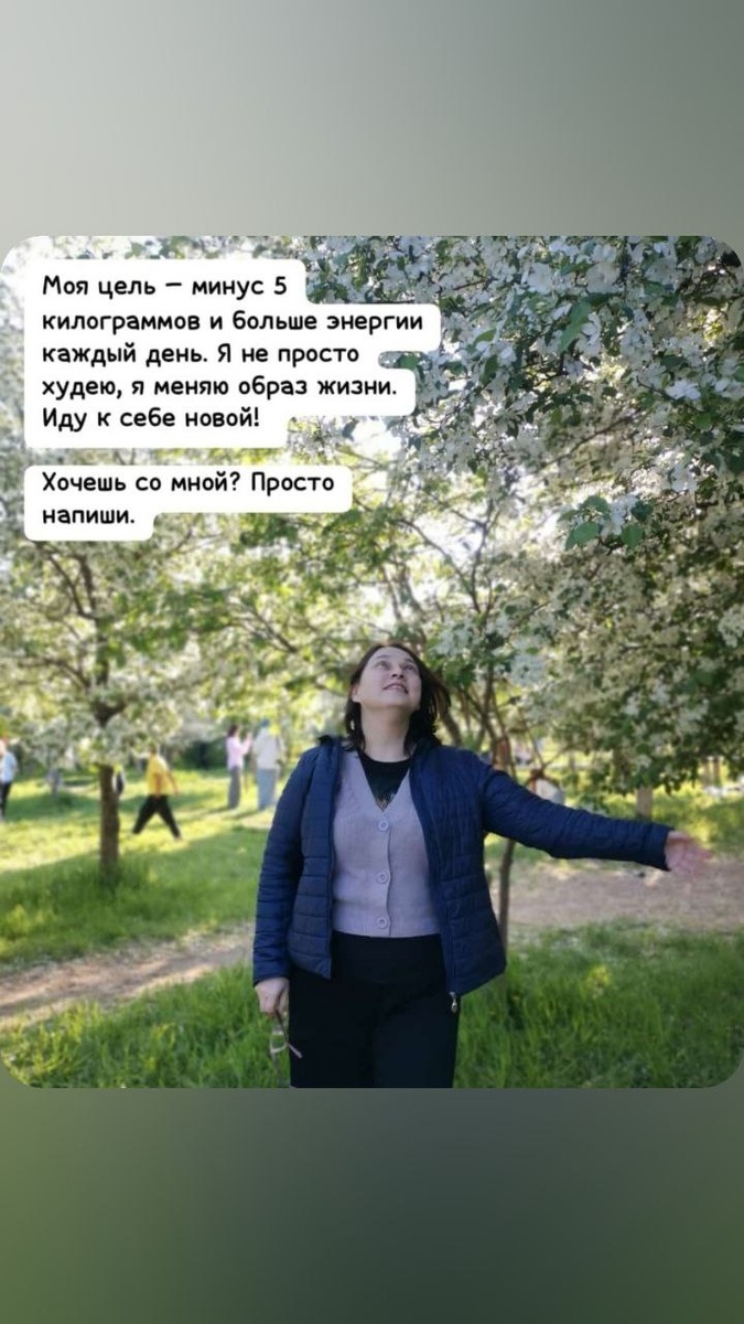 Моя цель — минус 5 килограммов и больше энергии каждый день. 🥰 Я не просто худею, я меняю образ жизни. Иду к себе новой!
