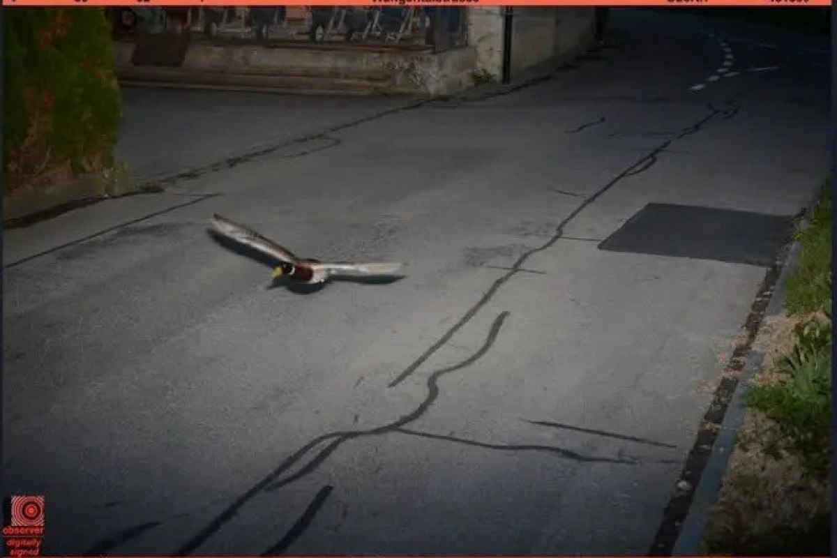 В Швейцарии утка попалась на превышении скорости. Птицу-нарушительницу зафиксировала дорожная камера в коммуне Кениц. Кряква летела вдоль улицы Вангентальштрассе со скоростью 52 км/ч, хотя на том участке запрещено ехать быстрее 30 км/ч. В полиции пошутили, что, возможно, это утка рецидивистка, похожая птица уже попадала в объектив той же самой камеры 7 лет назад и тоже превышала допустимую скорость. В соцсетях многие назвали это фото фейковым, но в ответ полиция заверила, что снимок подлинный, так как все камеры ежегодно проверяет швейцарский институт метрологии.