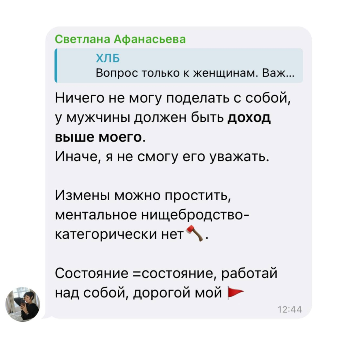 Но если главнее, если говорят, что женщина делает мужчину успешным то, может быть, это "не та" женщина? Не та, раз она не сделала чтобы ее мужчина зарабатывал больше. А может ей это не нужно и раз в семье в целом базовые потребности закрыты и есть достаток то все хорошо?
