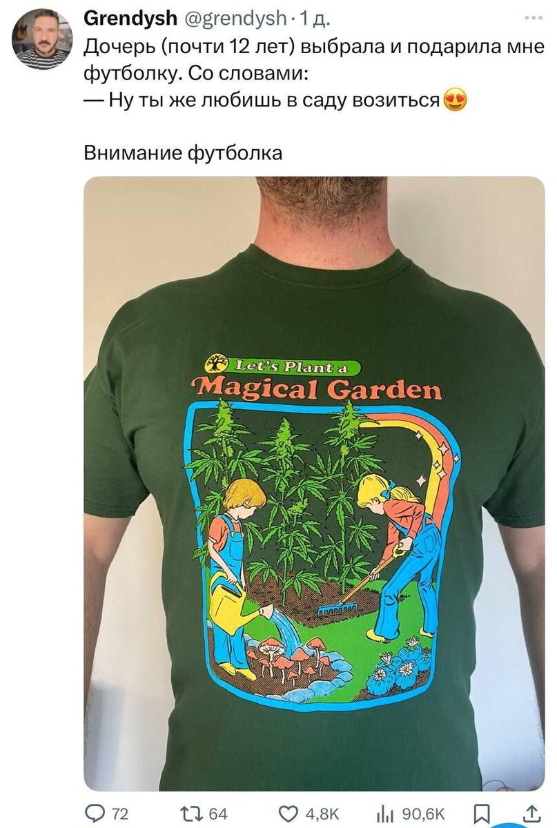 Мне тоже дочь (почти 19 лет) недавно подарила футболку, со словами: «Пап, ну ты же любишь Superdry, вот я тебе привезла, у тебя такой вроде нету». Просто детей правильно воспитывать надо)